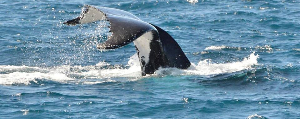 Première rencontre à distance avec une femelle et son baleineau, puis plusieurs individus isolés sur le chemin du sud et enfin un groupe de quatre mâles plutôt acrobatiques !
